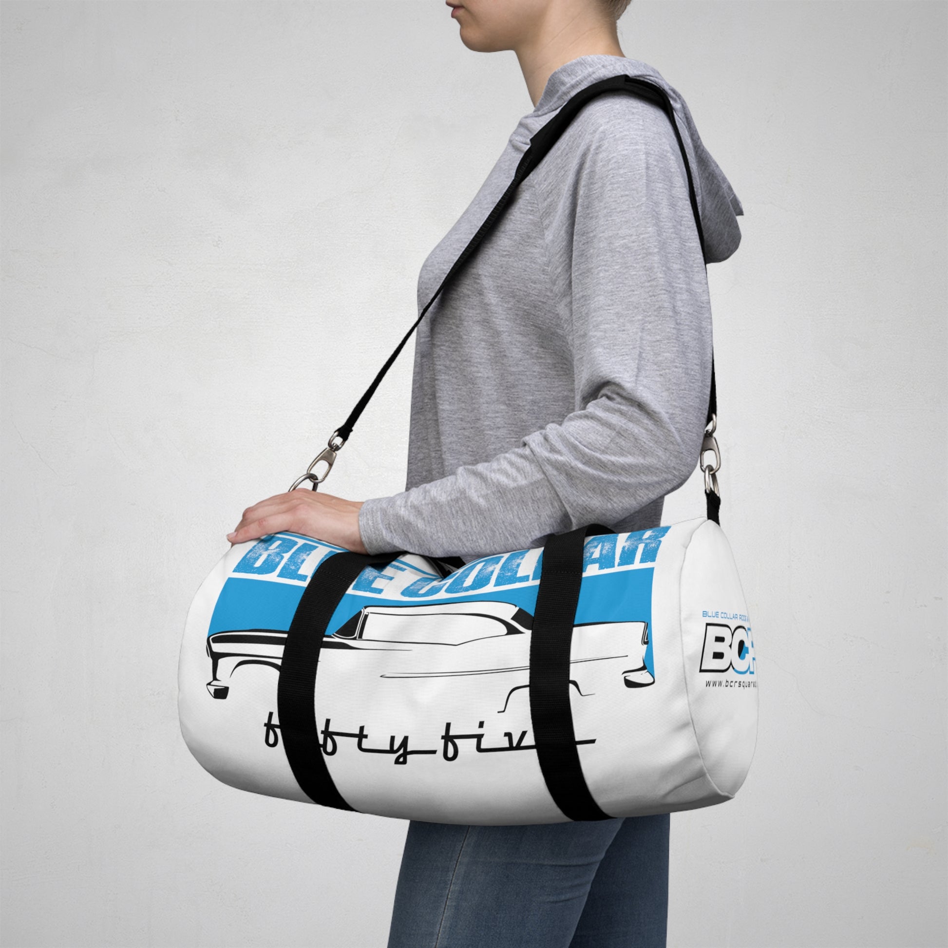 Blue Collar Fifty Five White Duffel Bag